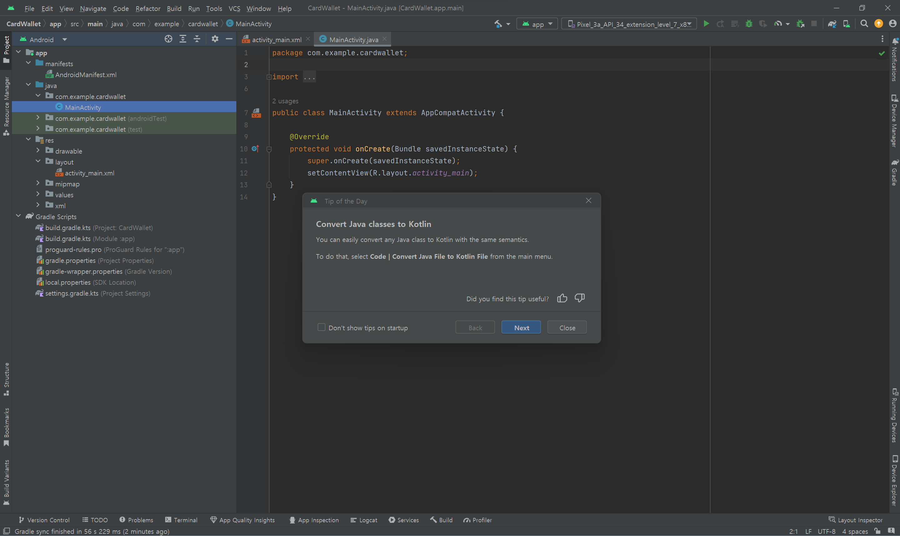 그리고 옆에 Manifest 파일과 layout의 위치 gradle, Activity의 위치등은 기억하도록 하자.