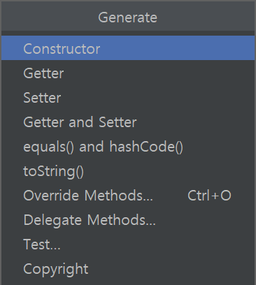 다음으로 마우스 우클릭이나 위에 바에서 Code 부분에 들어가 Generate를 눌러준다.