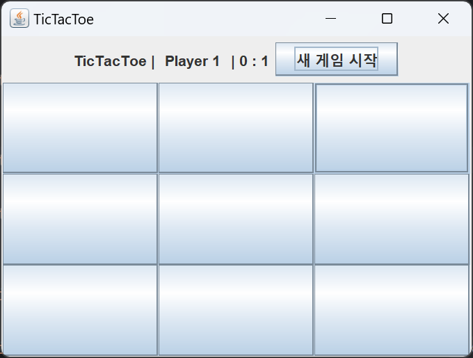 오늘은 GUI만 적용할 것이기 때문에 저번에 만들어놓은 TicTacToe 클래스는 유지하고